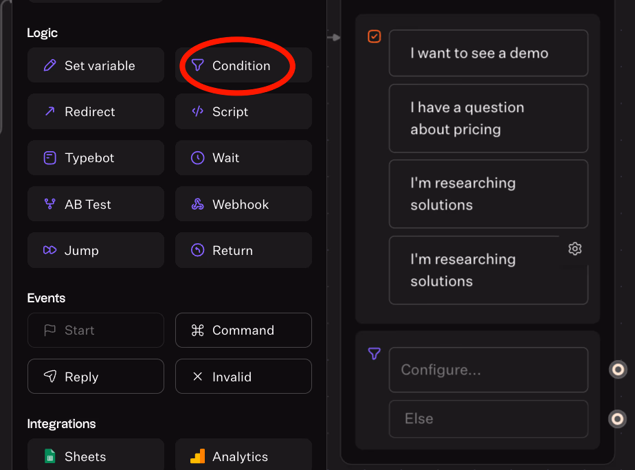 If {{visitor_intent}} equals "I want to see a demo" - Branch high-intent leads to demo booking, others to nurture sequences