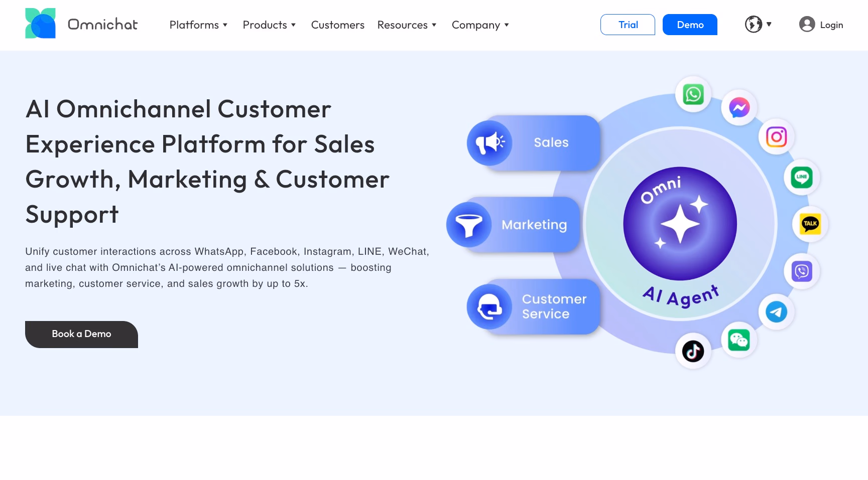 | Omnichat | Omnichannel retail with OMO sales, APAC focus | No (contact for pricing) | Custom; enterprise/midmarket | Yes, no-code AI builder | Official WhatsApp BSP | LLM/NLP-based Omni AI Agent Studio | Unified profiles, 360° CRM | Multi-agent, routing and assignment | Marketing and revenue analytics | Salesforce, Shopify, API | WhatsApp, Messenger, LINE, Instagram, WeChat, website | Asia retail and e-commerce, in-store and online integration |