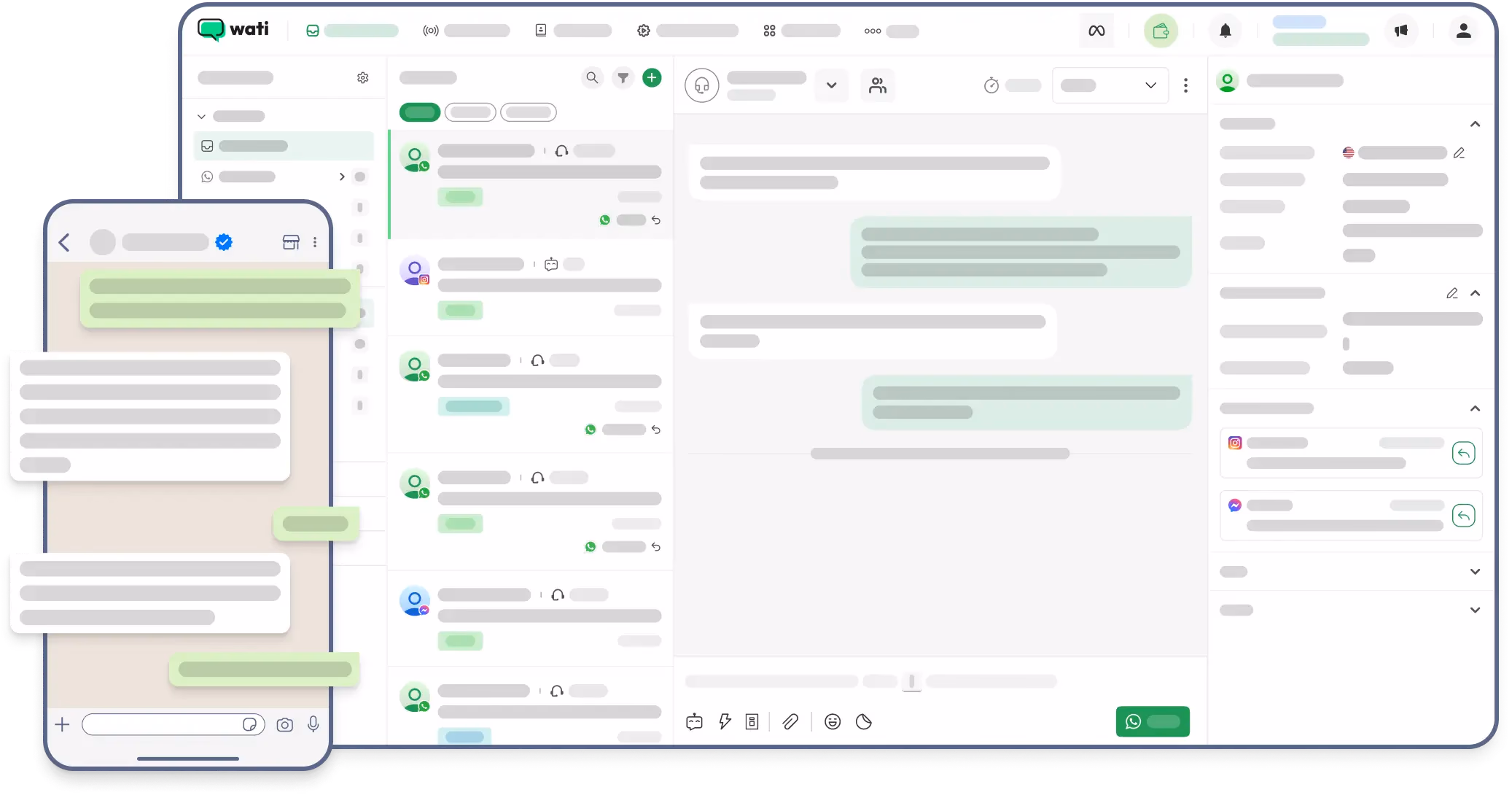 | Wati.io | All-in-one WhatsApp automation with multi-agent inbox | No | $49–$64/mo; 7-day trial | Yes, visual flow builder | Official WhatsApp API | AI for knowledge base, FAQ, and conditions | Tags, lead tracking | Team inbox, agent assignment | Dashboards, campaign statistics | HubSpot, Zoho, Shopify, WooCommerce, API | WhatsApp, Instagram, Facebook, SMS | SMB support and marketing, multi-agent WhatsApp operations |