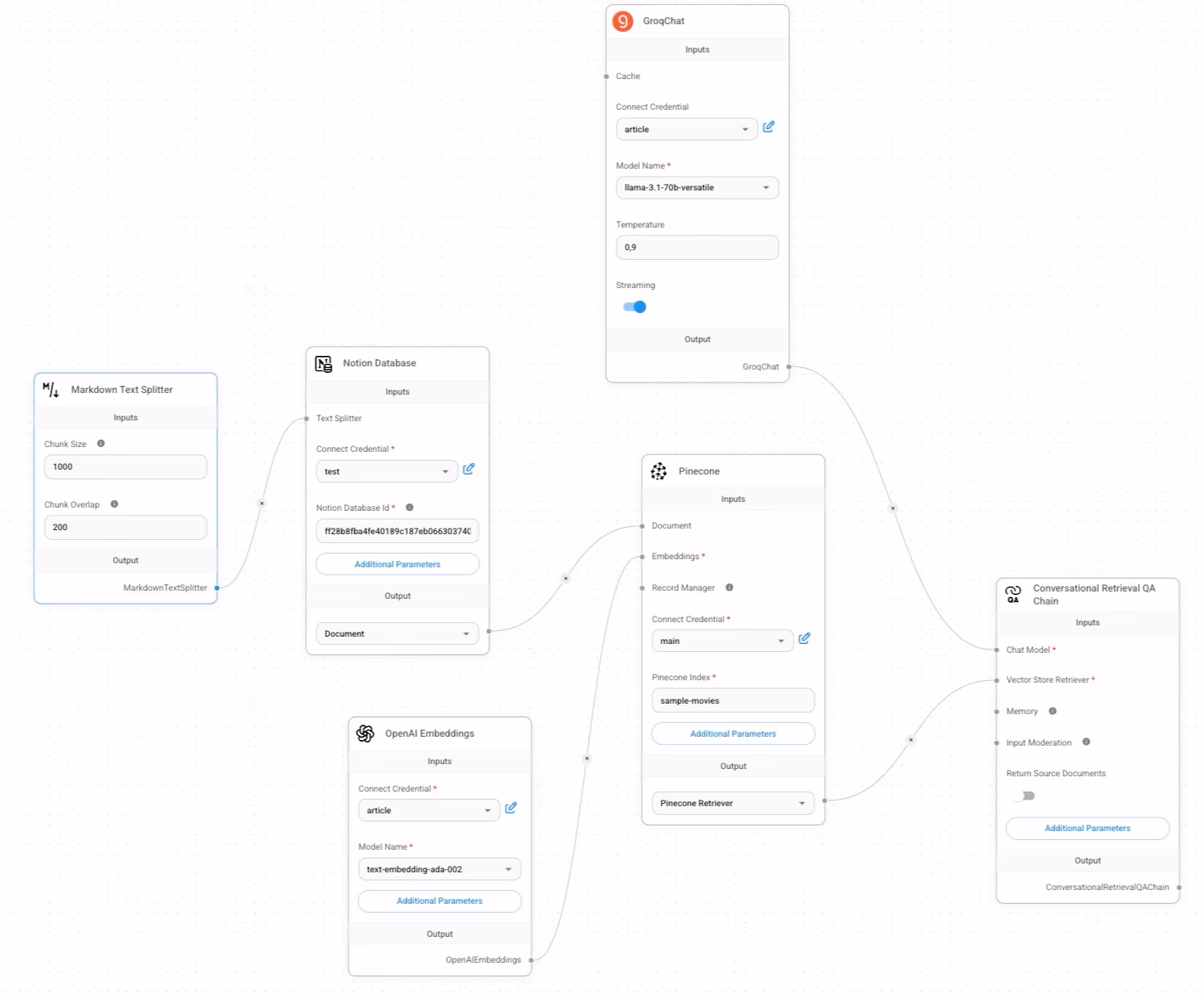 - Add a "Conversational Retrieval QA Chain".