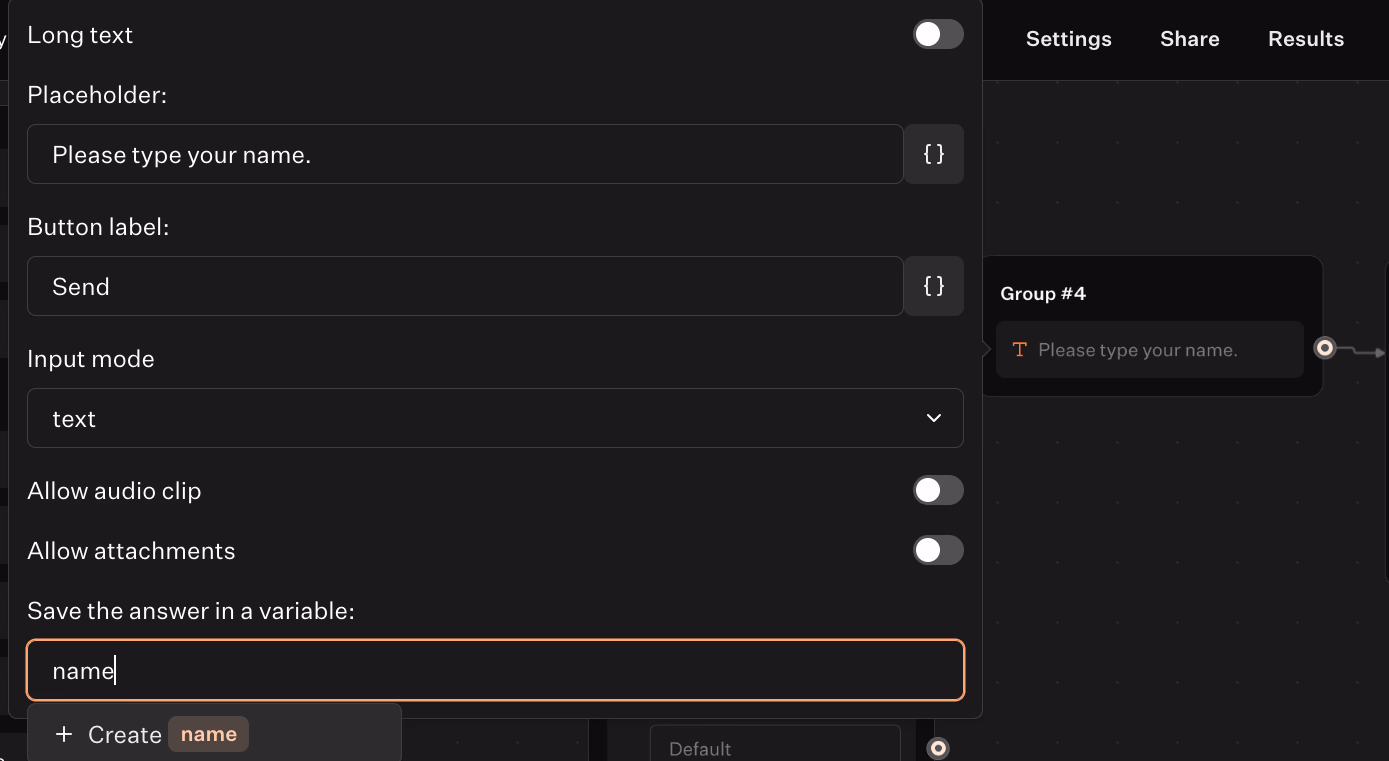- Fill save the answer in a variable bar. Let's label it as