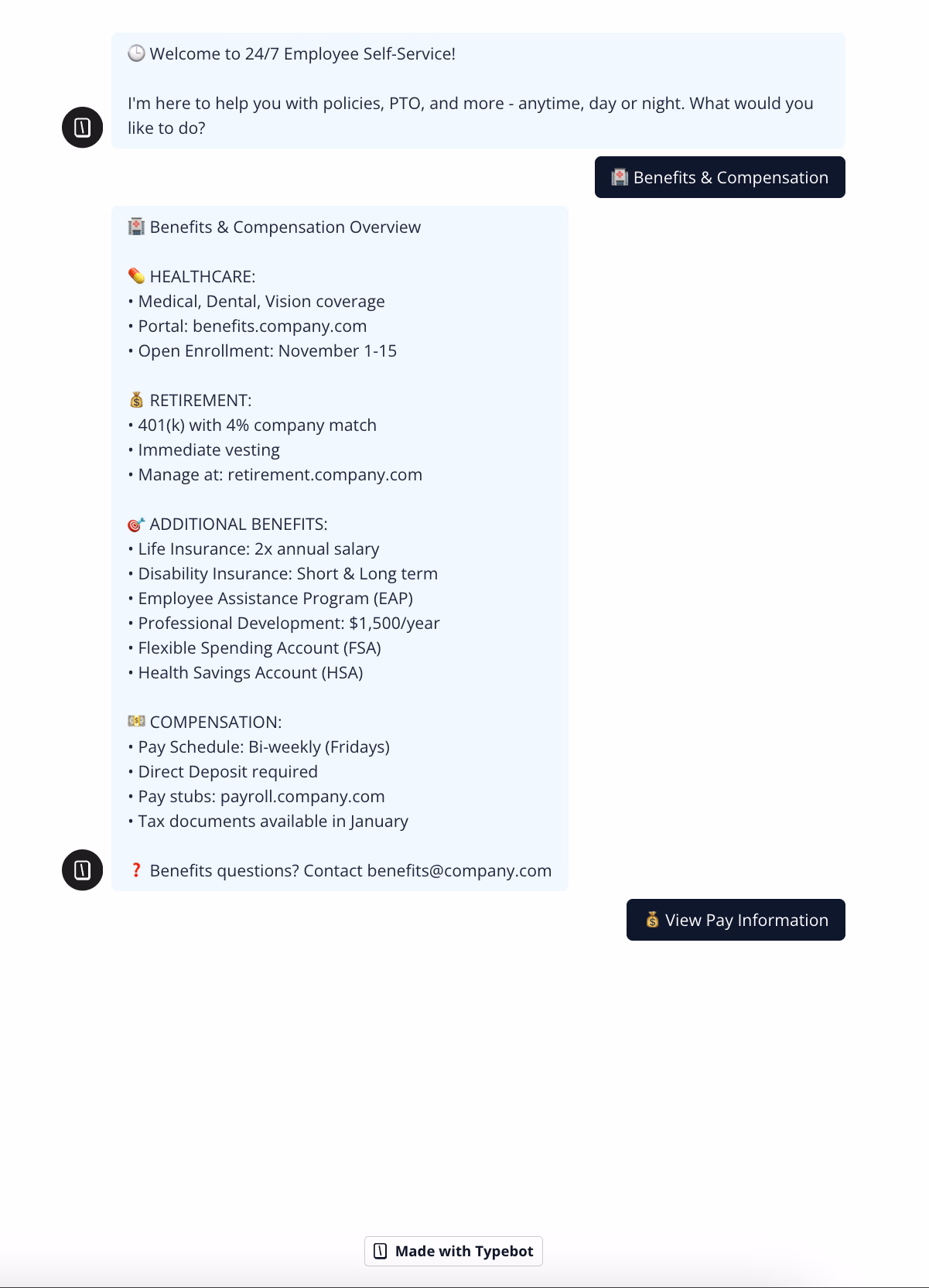 It’s always available to streamline tasks like HR questions and IT support. Think of it as a helpful colleague who knows every answer and never leaves their desk.