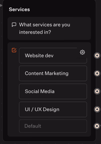 - Drag a Text block with the prompt: “What services are you interested in?”