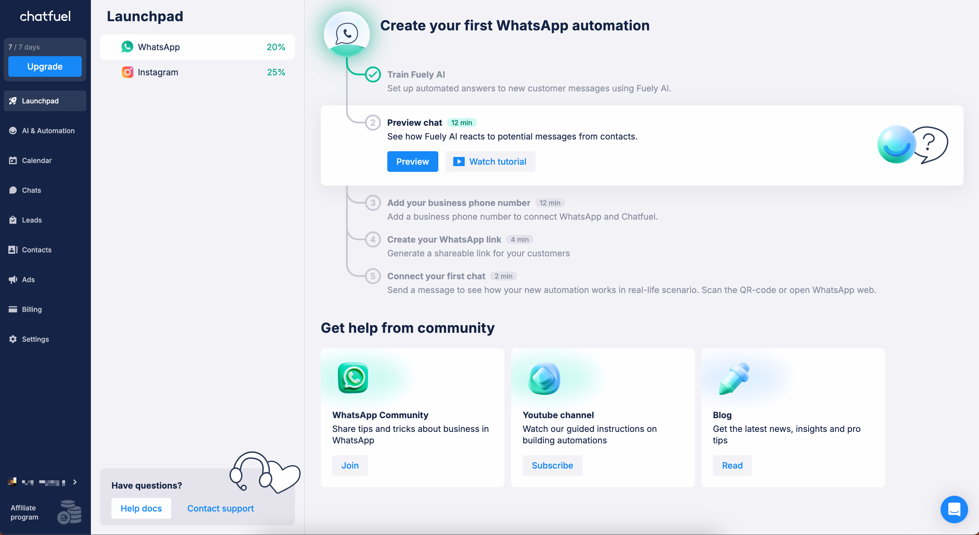 Chatfuel focuses on Facebook, Instagram, and WhatsApp. This suits many businesses. However, if your audience spreads across multiple channels, Chatfuel requires managing separate subscriptions and dashboards.
