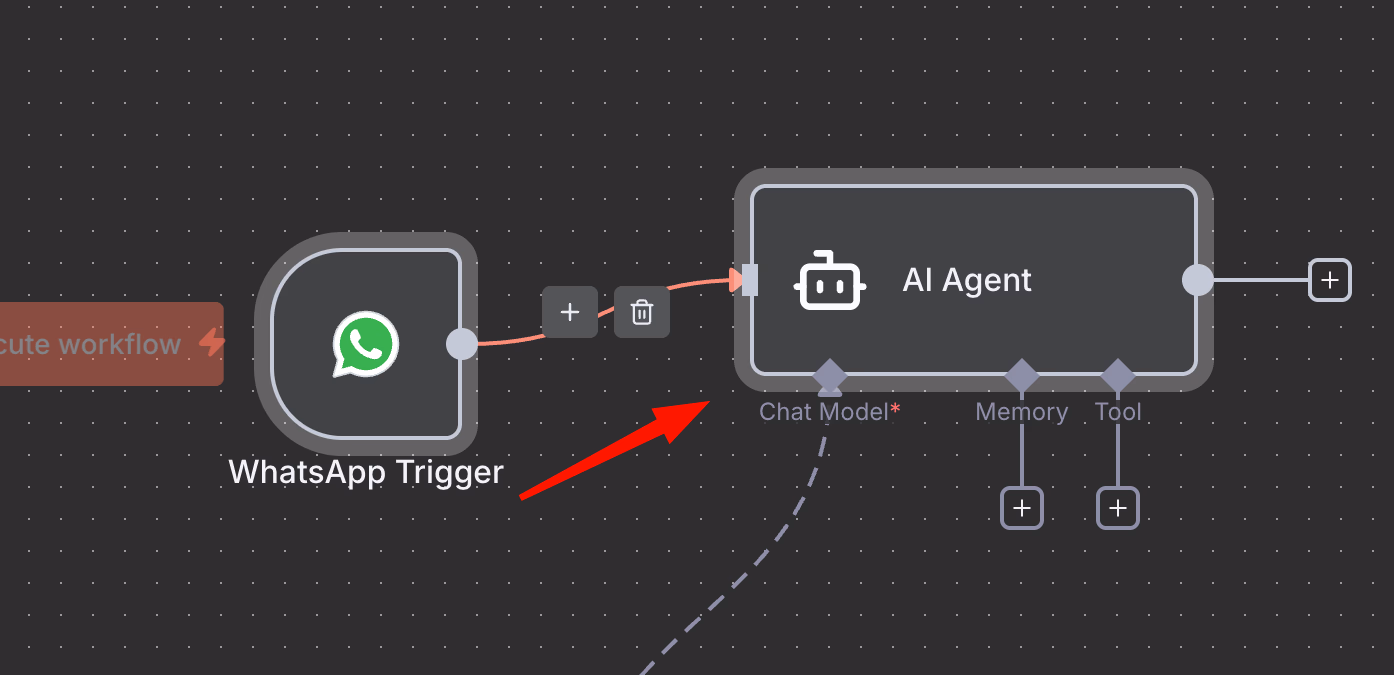 - Add the AI Agent node and connect it to your trigger.