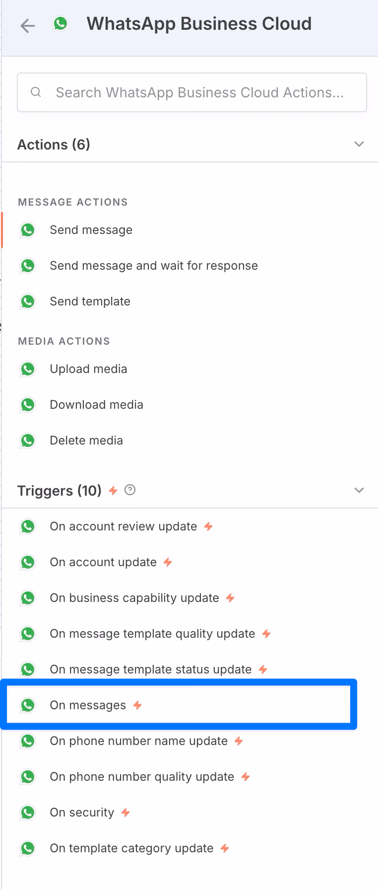 - Add the WhatsApp Trigger node to your workflow.