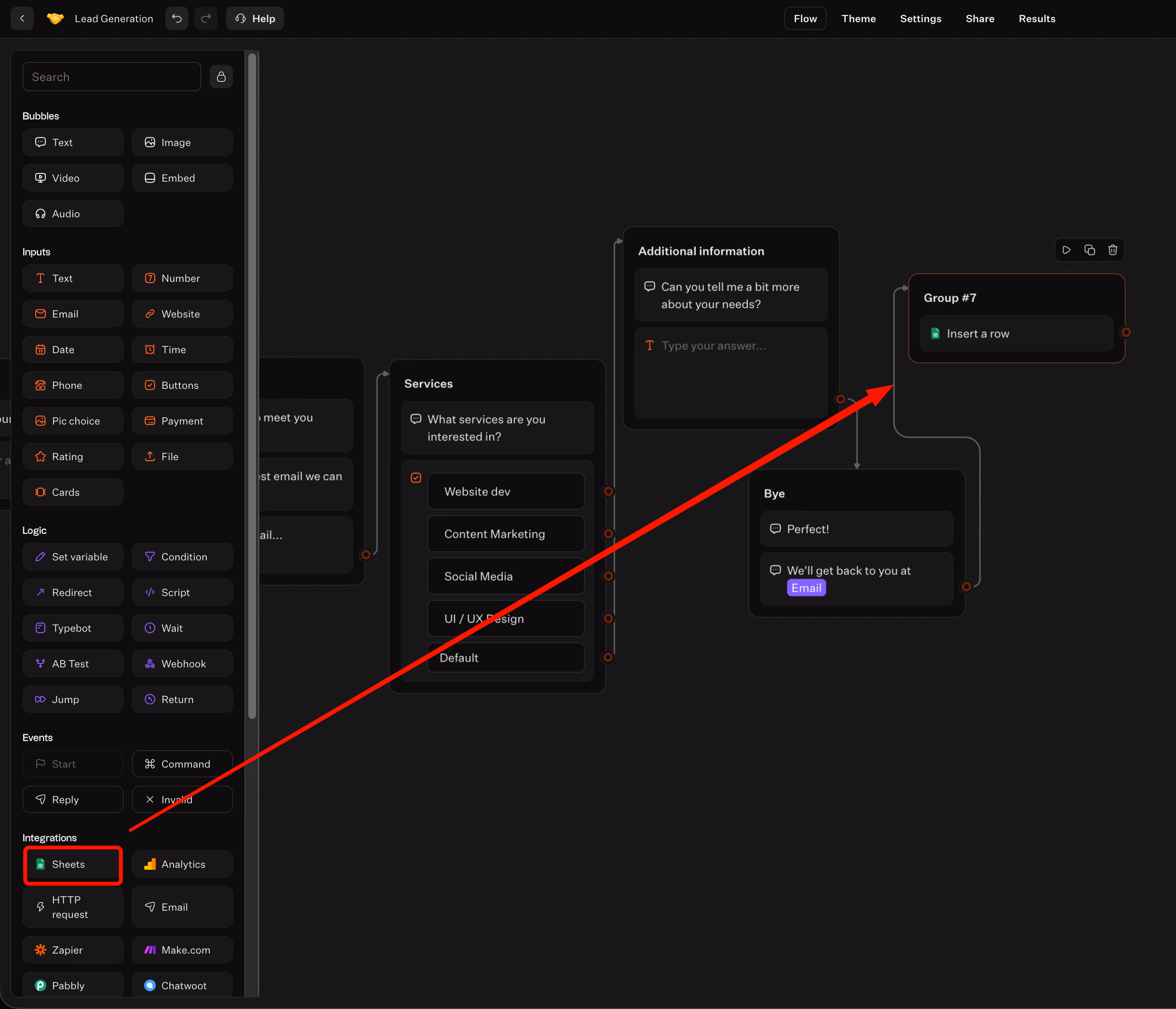 Typebot’s Google Sheets integration helps log each lead with consistent columns. Capturing data inside the bot flow ensures information is saved immediately, avoiding lost details.