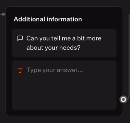 Drag a Text (Question) with: “Can you tell me a bit more about your needs?”