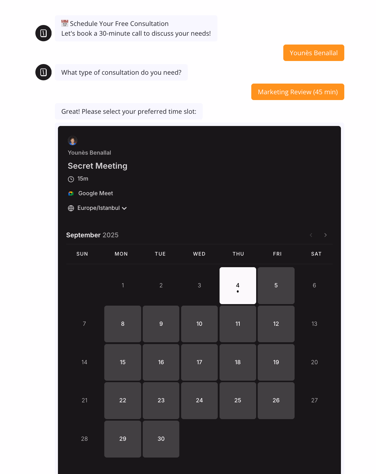 - Schedule meetings with Cal.com, all within the chat.