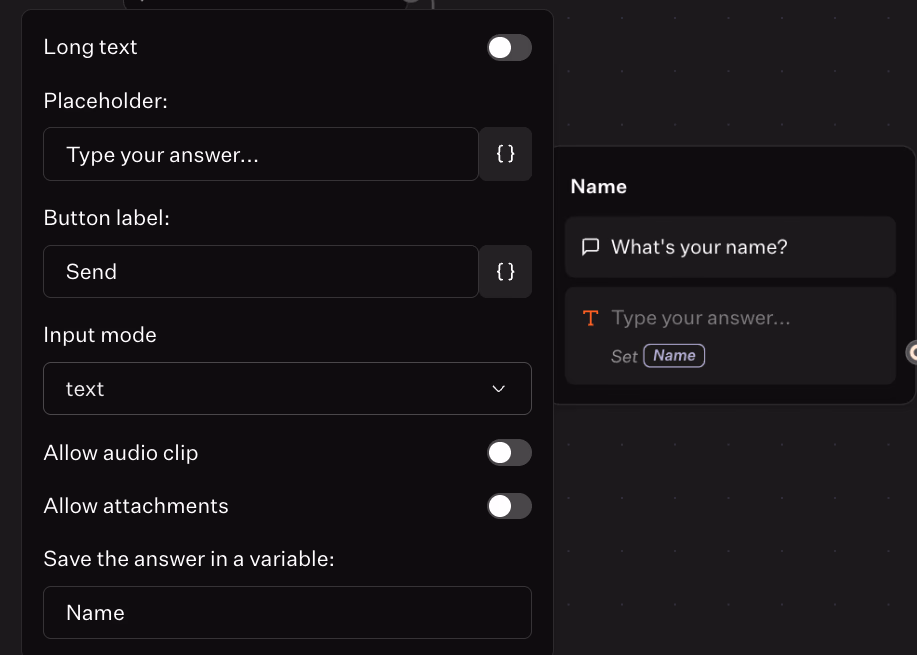 Drag Text bubble and set the label: “What’s your name?”