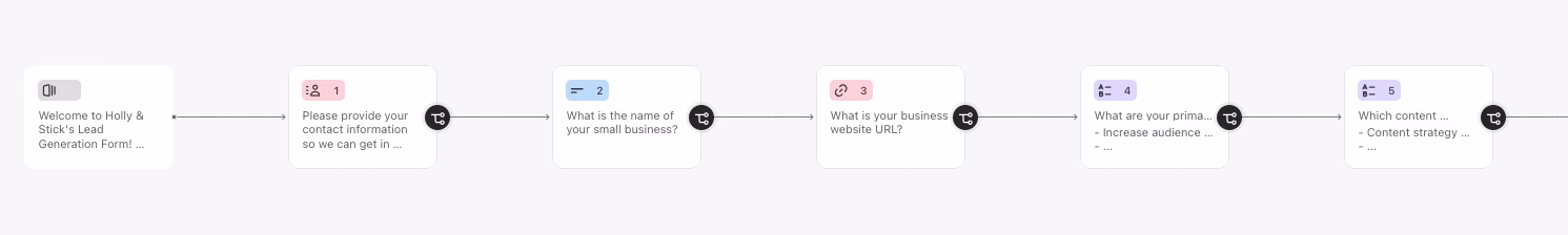 For Lead Generation: "Create a lead generation form for a B2B software company selling project management tools to teams of 10-50 people. Include fields for company size, current tools used, main pain points, and budget range. Make it conversational and not too long."