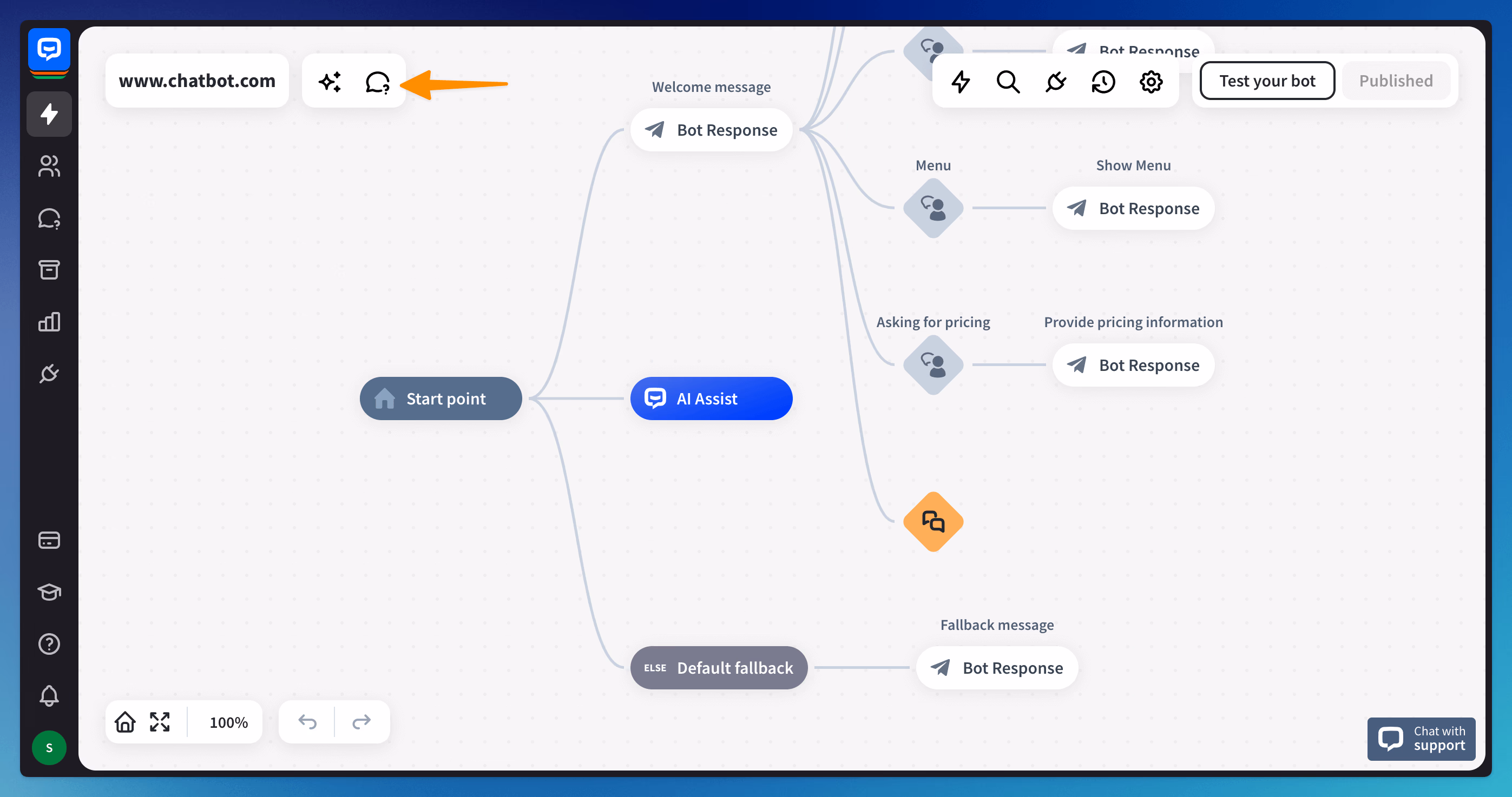 This feature makes chatbot creator accessible to users of all technical skill levels. Instead of coding, you can visually map conversation flows. You can also add elements and adjust the logic easily.