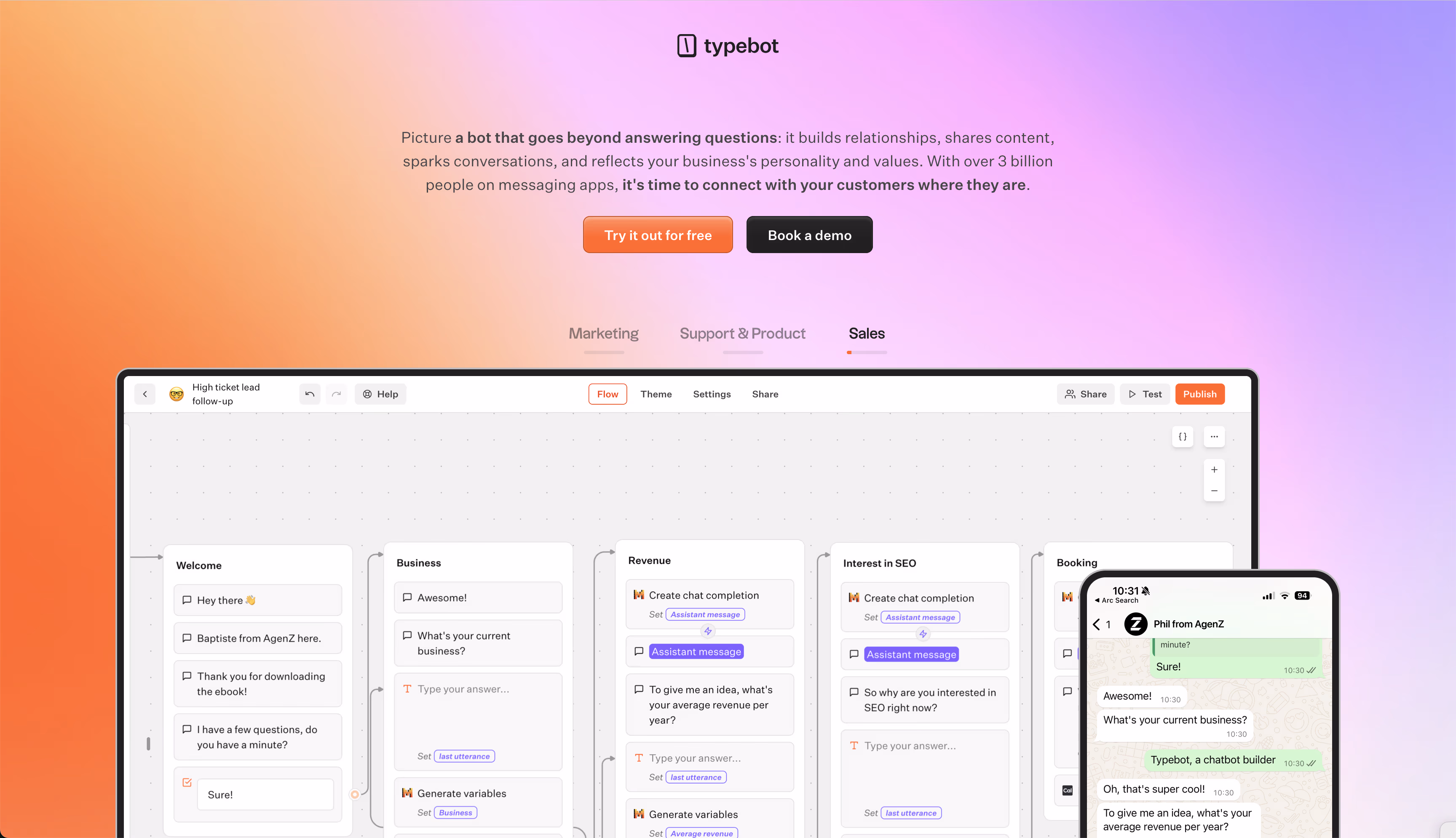 For customer support, picture an online retailer using Typebot. The support can handle common questions like “Where’s my order?” or “How do I return an item?”.