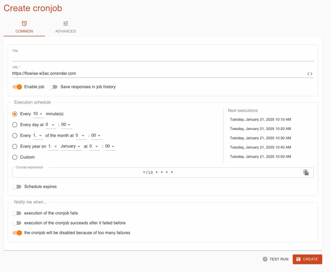 - Create an account on cron-job.org.