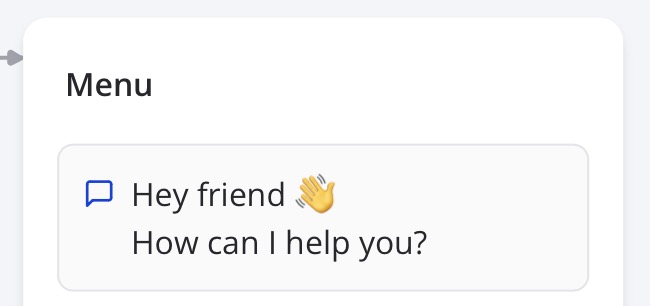 Kick off your chatbot flow with a warm welcome and a clear call-to-action. Use a friendly tone and provide a brief overview of what the chatbot can do for the user. For example: