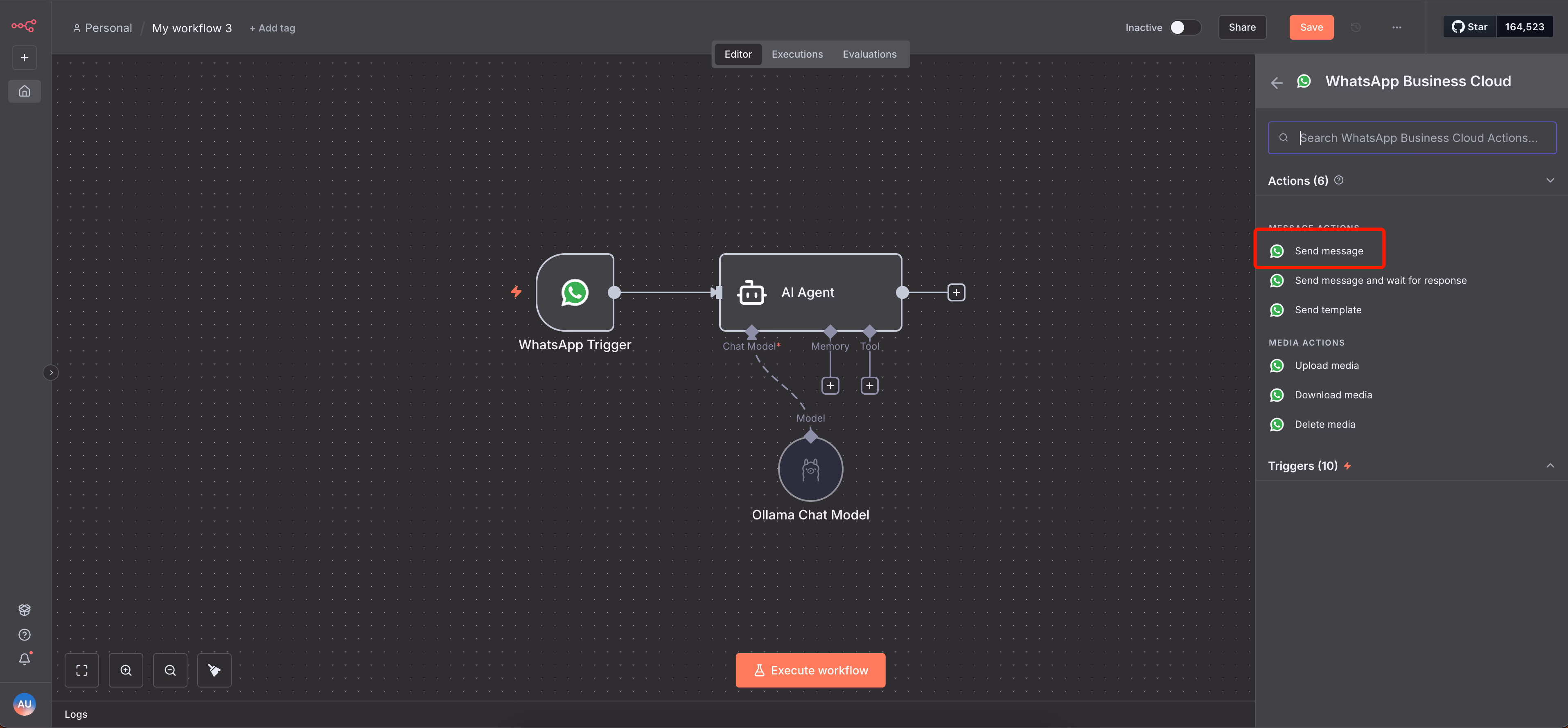 - This node "listens" for incoming WhatsApp messages and triggers your workflow automatically.