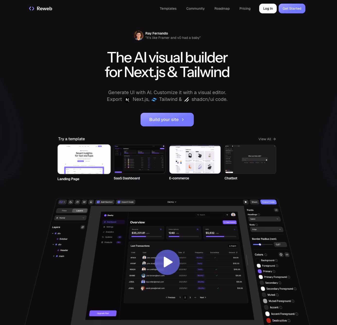 Reweb stands out because of its deep integration with the popular shadcn component library. This provides developers with a robust foundation for building sophisticated user interfaces.