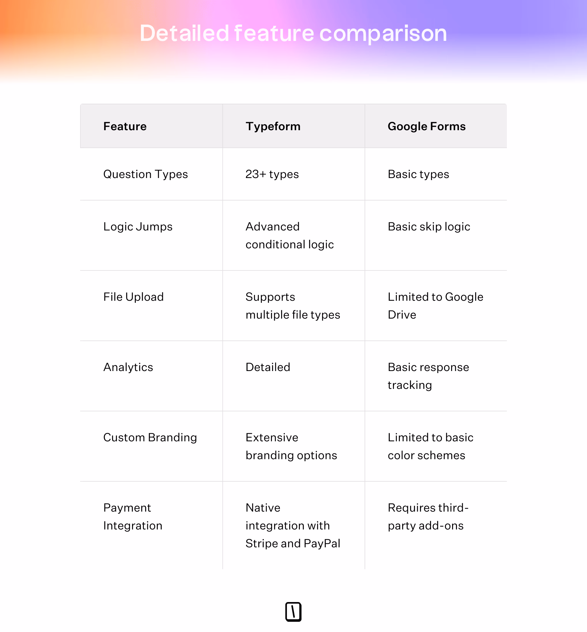 | Feature | Typeform | Google Forms |